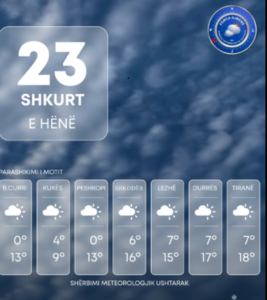 Pavarësisht rrezeve të ngrohta të diellit që dominuan gjatë ditës së sotme, parashikimi për të hënën paralajmëron një kthesë të papritur dhe shenja “të çmendura” dhe te paqendrueshme të motit.