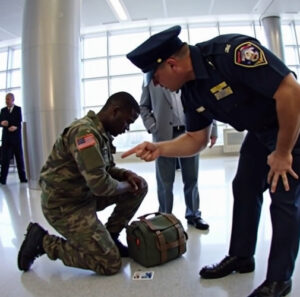 As the tension in the terminal reached a crescendo, General Caldwell finally moved. His presence was a silent storm gathering force, and with a controlled, authoritative voice, he said, “I think it’s time you pick that up, Officer.”