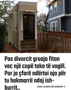 Kjo grua dhe burri i saj i mëparshëm jetonin ne nje shtëpi normale.Kur ata vendosën të divorcoheshin, burri vendosi që ta mbante ai shtëpinë ,duke i lene ish-gruas se tij një copë të vogël te tokës.